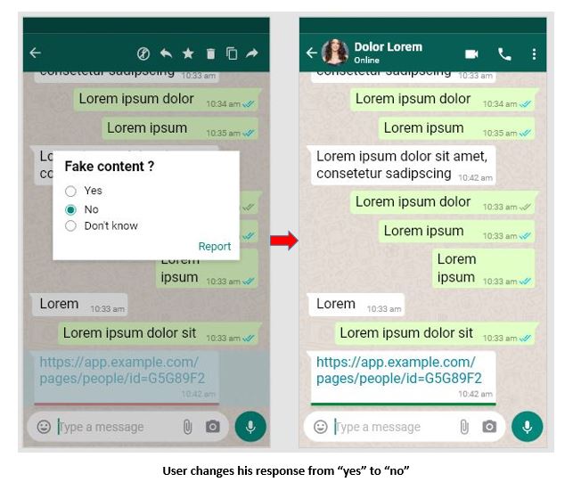 This text message approach will encourage the user to share his response objectively without being biased by the sender’s response. No matter what is the response of the sender (fake, non-fake, don’t know) the same text message with orange icon will be shared in all the three cases to the recipient. Now the recipient of the message can share his response by following the same procedure.